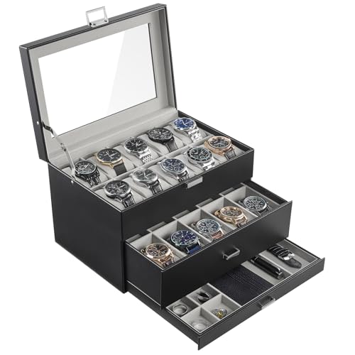 - ProCase メンズ腕時計ケース、10スロット腕時計ディスプレイスタンド、アクリル蓋付き、引き出し付き腕時計ディスプレイケース、2層メンズ腕時計ボックス、男性と女性のための腕時計ホルダーオーガナイザー3,999円