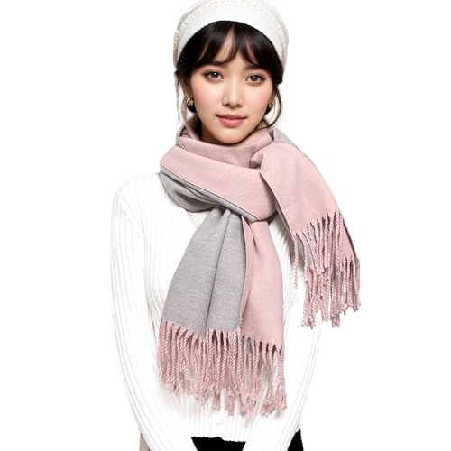 [Hopsooken] マフラー レディース 人気 カシミヤタッチ ストール 大判 マフラー ファッション 冬 厚手 両面 使える 無地 学生 誕生日プレゼント フリンジ生地 襟巻き 秋冬定番 クリスマスプレゼント (ピンクグレー)
