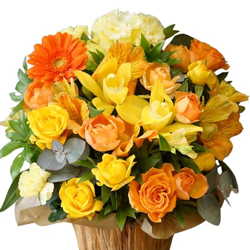- 【クール便】 おまかせフラワーアレンジメント (イエロー・オレンジ, Mサイズ) アレンジメントフラワー アレンジメント ギフト 花束 生花 花 プレゼント 誕生日 結婚記念日 お祝い 開店祝い 還暦 母の日 ペット お供え4,980円