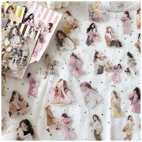 - ANZOBEN シール コラージュ 素材 フレークシール 詰め合わせ 大容量 180枚 ステッカー 女の子 人物 PET シール 半透明 防水 メモ帳 手帳 DIY用(少女)1,280円