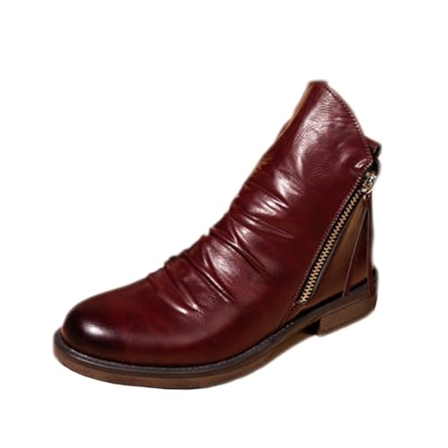 メンズ ブーツ メンズブーツ ショートブーツ ドレープブーツ 27.5cm エンジニアブーツ ワークブーツ サイドジッパー フォーマル ペコス チャッカブーツ 靴 メンズシューズ 革靴 ビジネス レッド 黒 赤 茶色 灰色