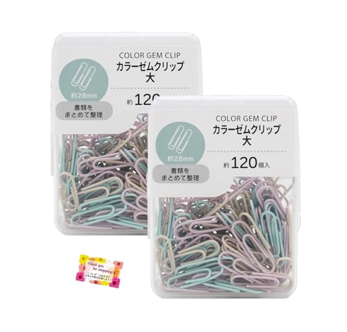 【くすみカラーのお洒落なクリップ♪】 カラーゼムクリップ 大 カラフルでかわいい! ノートや手帳に 書類まとめに メッセージカードにも リボンや飾りを付けても 手芸やDIYに 2.8cm 約120P 【2個セット】