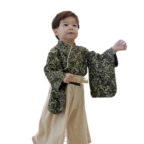 [SLINX] 男の子ベビー着物セット男の子 キッズ 袴 セット 袴風 セパレート 上下セット フォーマル 簡単 簡易 はかま 着物 衣装 和装 お宮参り 初節句 七五三 子供服 衣装 初節句 お祝い お正月 ベビー服 HF422 (カーキ, 100)