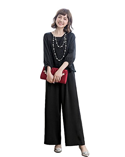 [ECUSSY] エクス パンツドレス レディース パンツスーツ セットアップ ワイドパンツ 結婚式 フォーマル スーツ 入学式 卒業式 パーティードレス 二次会 披露宴 同窓会 お呼ばれ セレモニースーツ (ブラック,XXL)