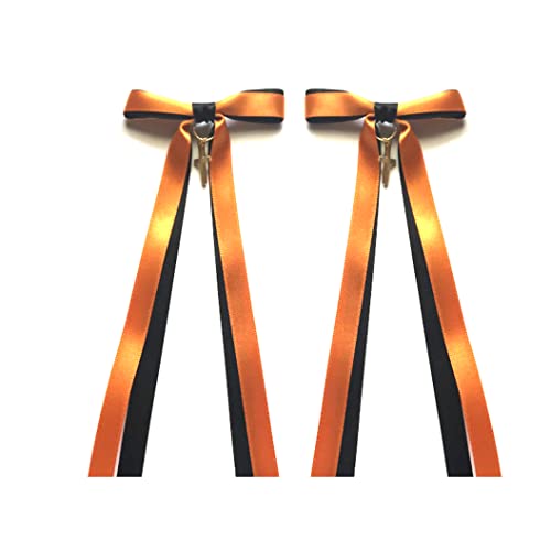(小野寺屋/ペンギンランド)【ヘアクリップ|左右セット】二色のセミロングリボン ロリータ ゆめかわいい ゴスロリ ヘアクリップ ヘアピン ヘアアクセサリー 結婚式 コスプレ (黒×パッションオレンジ)