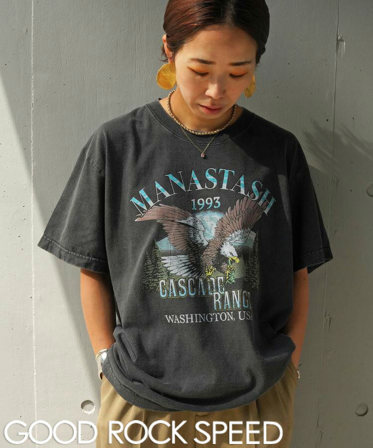【送料無料】【MANASTASH】GOOD ROCK SPEED×MANASTASH/別注イーグル コラボTシャツ ユニセックス トップス Tシャツ 半袖 マナスタッシュ グッドロックスピード ヴィンテージライク ピグメント加工 ブラック M L XL シンプル 春夏 新作 23ss