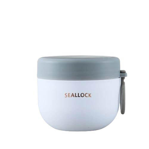スープジャー 朝食カップ、オートミールカップ 密閉カップ 蓋とスプーン付きの 304 ステンレス鋼魔法瓶ボウル 大容量 600/800ML 弁当箱 丼型 広口 ランチジャー 電子レンジ対応 密閉型で漏れ防止 持ち運びが簡単 600ML 白