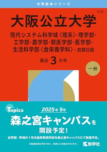 - 大阪公立大学(現代システム科学域〈理系〉・理学部・工学部・農学部・獣医学部・医学部・生活科学部〈食栄養学科〉-前期日程) (2025年版大学赤本シリーズ) [ 教学社編集部 ]2,365円