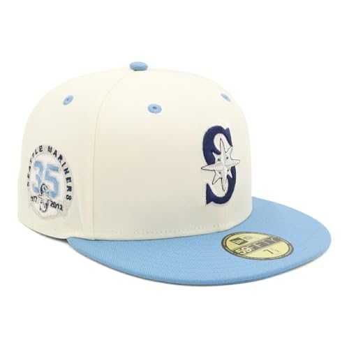 [ニューエラ] newera キャップ 59FIFTY 70908534 NER35C0322 MLB シアトル・マリナーズ SEAクローム/スカイブルー 白 シロ 7 3/8 SIDE PATCH 2-Tone ONSPOTZ別注 メンズ レディース 帽子 ゴキュウフィフティー 春夏季節コーデ 人気サイズシール 大きい小さいサイズ 普段使いスポーツ野球帽