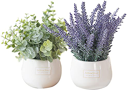 - 人工観葉植物 グリーン 鉢植えの人工植物 シミュレーションフラワー 造花ミニポット フェイクグリーン ラベンダーの花 ユーカリ葉 プレゼント小さな鉢植え(6個セット)
