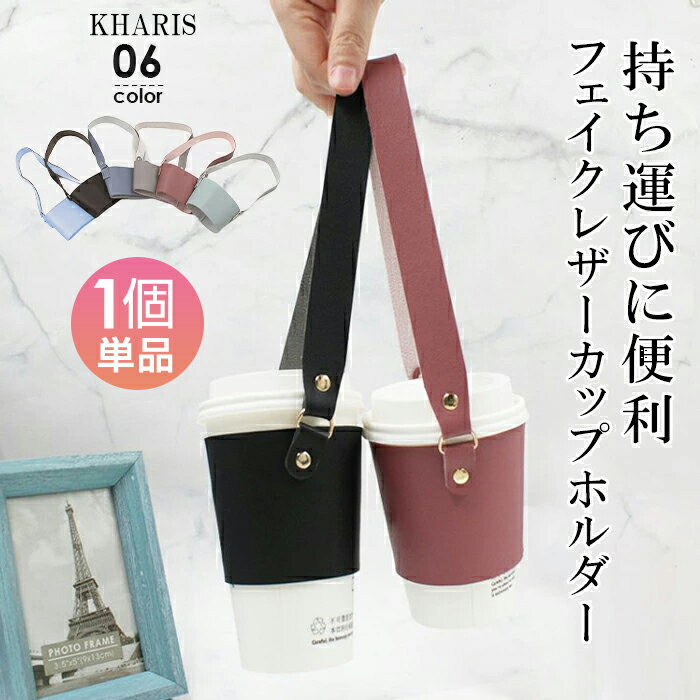 <1個590円!3個購入&クーポン利用で> SNSで話題! カップホルダー カップ 持ち運び 持ち運べる ショルダー フェイクレザー 韓国 台湾 人気 トレンド ドリンクホルダー 可愛い テイクアウト お洒落 コーヒー【 フェイクレザーカップホルダー 】 カリス