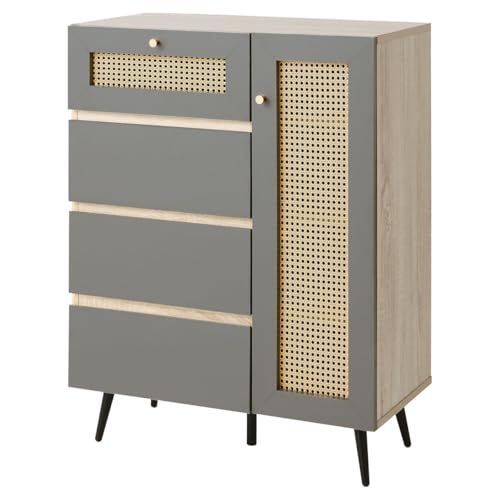 - [P5倍 1/24 20時〜] 収納棚 キャビネット ラタン調チェスト サイドボード 3段 ラタン調 リビング収納 収納 ナチュラル ラタン風 おしゃれ 大容量 チェスト 扉 棚 脚付き 本棚 リビング 木目調 サイドチェスト サイドキャビネット24,999円〜