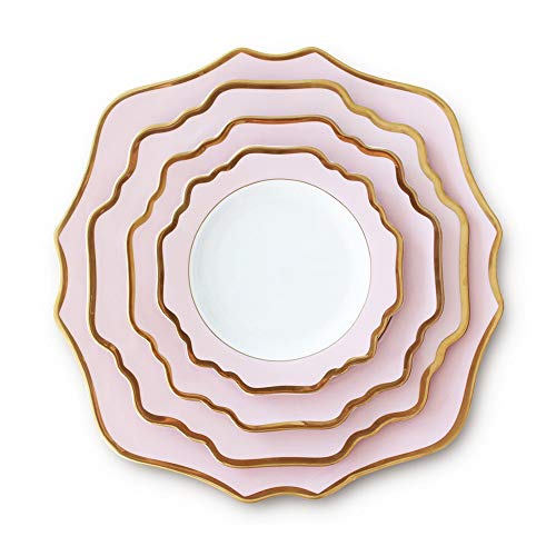 洋皿プレートカトラリーセットする ボーンチャイナの4枚は、光ピンクゴールド太陽の花のディナープレートセットホテルのレストラン世帯のステーキプレートセラミックプレート食器 ファインポーセレン (Color : Pink, Size : ONE SIZE)