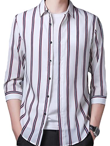 [ワイエフ] ストライプシャツ 柄シャツ メンズ 7分袖 カジュアル 薄手 涼しい おしゃれ 爽やか ゆったり 春夏 メンズ服 長袖メンズ 長袖シャツ 白シャツ チェック メンズシャツ長袖 メンズ長袖シャツ メンズシャツ カジュアルシャツ ワイシャツ 春物メンズシャツ tシャツ 長袖tシャツ かじゅある ストライプ 柄 縦縞 すっきり 細身 着痩せ スタイルアップ TYPE1 ホワイト L