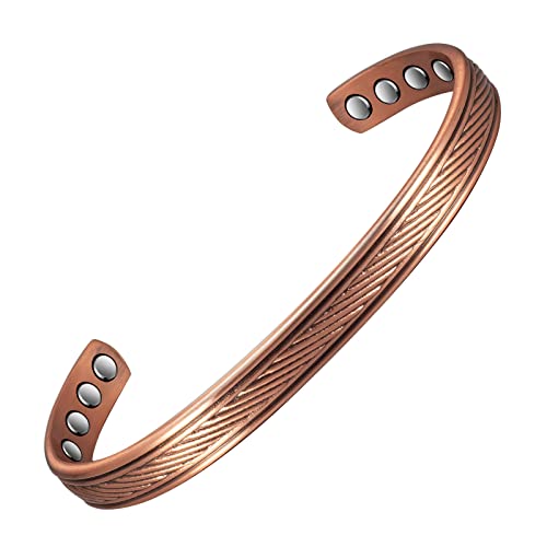 - 銅ブレスレット レディース メンズ リンパデトックス 磁気ブレスレット 100%純銅ブレスレット 磁石6個付き 3500ガウス - 銅ジュエリーギフト, 銅花&コーティングなしスムーズ1,095円〜