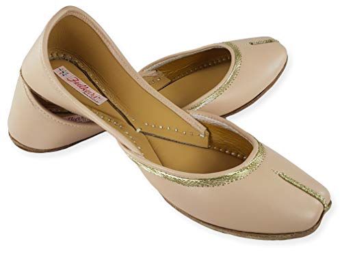 Fulkari レディース ナッパ ソフト本革 ジュッティス 噛みつかない フッティ レディース カジュアル フラット スタイリッシュ モジャリ エスニックフラット ガールズ US サイズ: 9 カラー: ベージュ