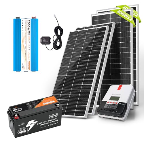 LVYUAN(リョクエン) [蓄電容量 2.56kWh 発電量3.2kwh ] 800W ソーラーパネル発電キット: 太陽光パネル 200Wソーラーパネル 4枚 +MPPT 30Aコントローラー+ 2.56kWh リン酸鉄リチウム電池 1個 太陽光チャージ 付属 耐蝕性 省エネルギー 災害対策 独立型 自作 家庭用 DIY