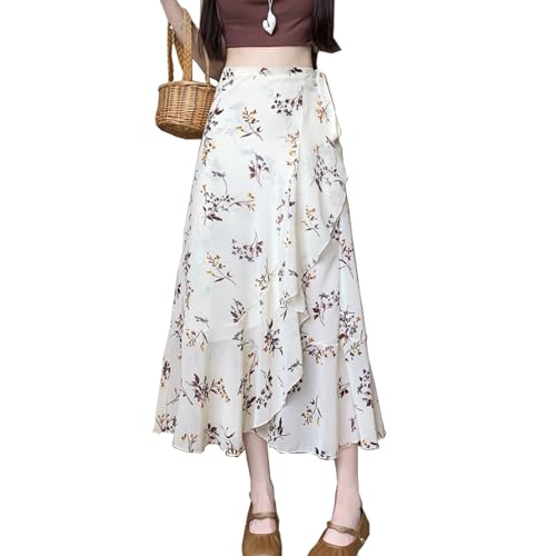 [CoeFodMavo] スカート レディース シフォン ロングスカート 花柄 フリル ハイウエスト 巻きスカート ゆったり Aライン 体型カバー 裏地付き 薄手 着痩せ 普段着 旅行 通勤 デート 春 夏
