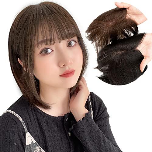 [ブライトララ] 前髪付き トップヘアピース 前髪ウィッグ 部分 ウィッグ 人毛 人毛ミックス ヘアピース つけ毛 p182-LDB