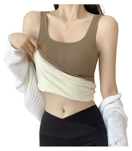 [優億] レディース 防寒インナー あったかい 裏起毛 カップ付き ノースリーブ タンクトップ インナー 秋冬 キャミソール 下着 防寒 伸缩性 暖かい 冬インナー ふんわり トップス 無地 秋 冬 (A03 カーキ(カップ付き))