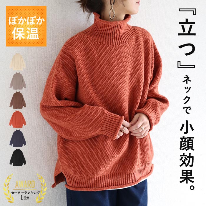 セール★2490円→1990円 ニット レディース タートルネック ニット ミドル丈 ハイネック プルオーバー 長袖 伸縮性 無地 メール便不可 22aw coca コカ