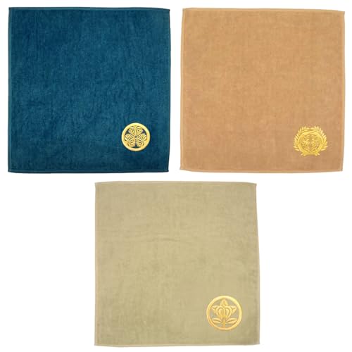 [Lulu&berry] [徳川家康][伊達政宗][井伊直政] 戦国武将 家紋入り 武将ハンカチ タオル 3枚セット ハンドタオル 武将タオル ハンカチ 家紋刺繍 25×25cm 日本製 今治産 極上 タオル 綿100%