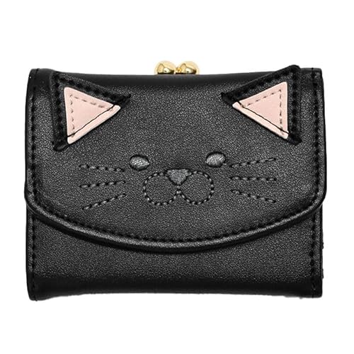 猫 ねこ ネコ 財布 グッズ 猫グッズ 猫柄 顔 猫耳 耳付き 白猫 黒猫 ツンデレねこちゃん がま口 三つ折り ミニ財布 ミニウォレット レディース 小さい 小さめ 通勤 通学 大人 小学生 中学生 高校生 かわいい 可愛い おしゃれ 小物 雑貨 (BLACK)
