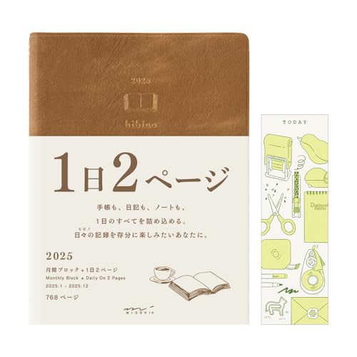 - ミドリ hibino 手帳 2024年 A6 デイリー 限定 しおり付 キャメル 22291006 (2024年1月始まり)5,170円