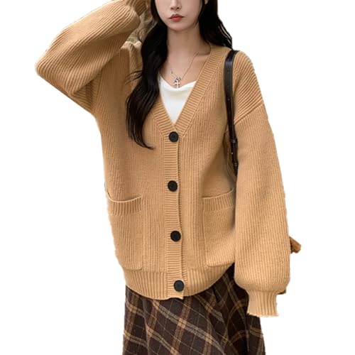 - [HarnyLoom] カーディガン レディース ニットウェア セーター Vネックカーディガン ゆったり 前開き 高伸縮 暖かい トップス アウター 無地 厚手 春秋冬 カジュアル オフィス 通勤 日常 冷房対策 (カーキ色)1,128円〜