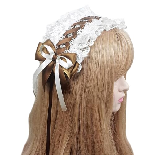 クリップ付きレースアップヘッドドレス ブラウン ロリータ リボン チャーム ロリータ ロリータ 髪飾り カチューシャ レース 蝶結び 萌え キュート かわいい コスプレ lolita メイドカフェ [並行輸入品]