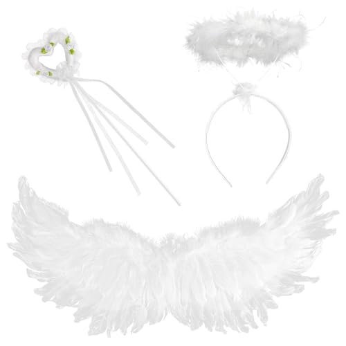 - [Formemory] 天使の羽 コスプレ 子供 天使の翼 天使の輪 ハートステッキ 髪飾り 4点セット 羽 白 エンジェル 仮装 コスチューム 小物 レディース ホワイト 男女共用 (65*35)999円〜