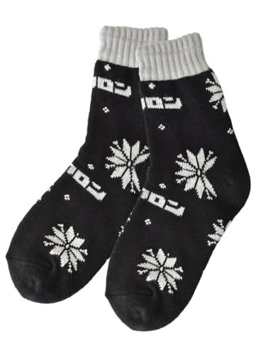 [ホカロン] レディース ルームソックス 厚手 冬 裏ボア 婦人 履く 部屋履き 冷え対策 暖か クルー丈 フェアアイル柄 雪柄 HKL51013F6 HKL51014F6 / A6Q / 23-25 雪柄ブラック