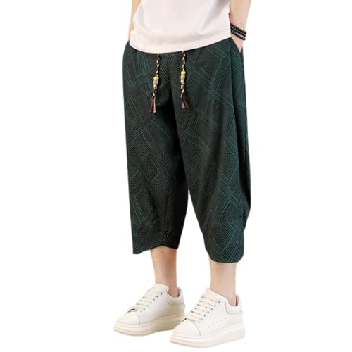 [Inkpoo] メンズ 夏用 ズボン 7分丈 サルエルパンツ テーパードパンツ ワイドパンツ 大きいサイズ ゆったり イージー ぱんつ 涼しい 袴パンツ ボトムス カジュアル オールシーズン対応 Green XL