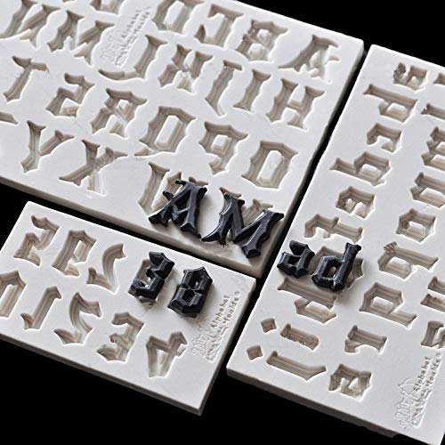 【Ever garden】 アルファベット シリコンモールド 大文字 小文字 数字 3点セット レジン アロマストーン 手作り 石鹸 キャンドル 樹脂 粘土 オルゴナイト 型 抜き型 花文字 Cloister Black 筆記体