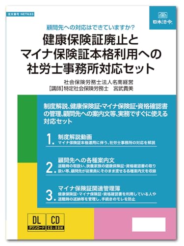 すべて見る- 実務書式付き 健康保険証廃止とマイナ保険証本格利用への社労士事務所対応セット ネット6338,800円