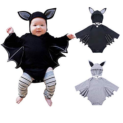 - ハロウィン コスプレ 子供 レジス ベビー服 コウモリ 衣装 赤ちゃん服 女の子 男の子 ロンパース 帽子付き 可愛い 可愛い 着ぐるみ 仮装 小悪魔 かぼちゃ コスチューム 変装 秋冬 長袖 カバーオール 新生児服 人気 誕生日 出産祝い 撮影 写真(#004ブラック,80)