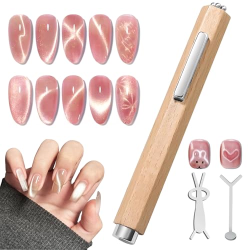 Elegirme ネイル用マグネット 3way 強力磁石 キャッツアイ ネイルアートツール マグネットジェルネイル用 スティック 木製 かわいい 3D ネイルアート ツール セルフ 家庭用
