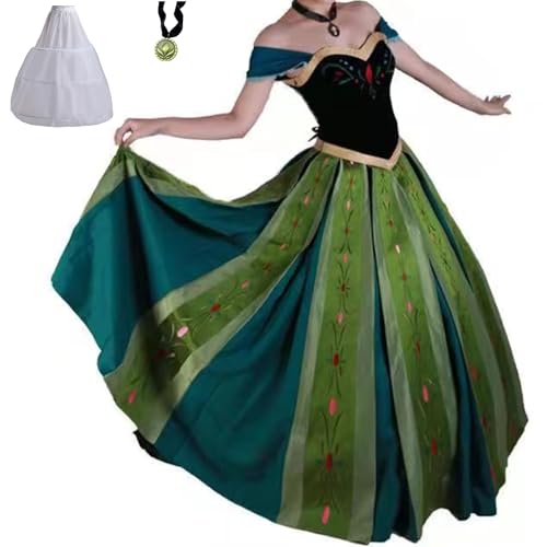 [Dumia] コスプレドレス レディス プリンセスドレス アナと雪の女王風 刺繍入り 立体感 大人用 3点セット ネックレス付き コスチューム 仮装 変装 宴会 舞台 演出服 祭り仮装 パーティ イベンド クリスマス 新年 プレゼント (3点セット, S)