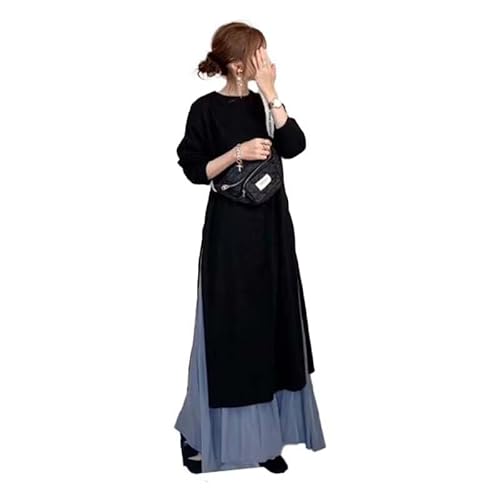 - 一部即納 ワンピース セットアップ レディース 春 秋 長袖 ロング ワンピース スカート セットアップ マキシ丈 ワンピ 秋 冬 通勤着 可愛い 秋服 ゆったり 体型カバー 2点セット スリット バイカラー 20代 30代 40代 50代 大きいサイズ 送料無料3,080円