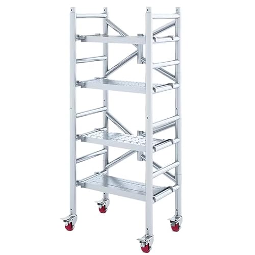 - 足場台 安全 洗車台 踏み台 業台 高所作業台 作業用踏台 足場板 足場器具 伸縮 折畳み 軽量 多目的 コンパクト 足置き台付き ドローストリング不要 耐荷重300kg 安定 安全 持ち運び便利 足場またははしごとして使用でき、窓の掃除、外壁と外壁の塗装 移動式階段 足場台 踏み台 (色 : Metallic, サイズ : 140x25cm)12,999円