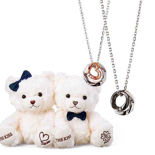 [ザ・キッス] SPD772DM-773DM-BEAR03-5000 【オリジナルベアセット】 シルバー ペアネックレス ダイヤモンド 2個セット 男女ペア カップル お揃い メンズ レディース クリスマス 記念日 誕生日 プロポーズ ラッピング袋 BOX付 LOVE&HAPPY くま ぬいぐるみ