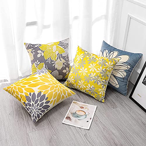OTOSTAR クッションカバー 北欧 4枚セット 45×45cm ベルベット 可愛い おしゃれ 柄 チャック モダン 家庭装飾 飾り インテリア ソファー用クッションカバー ソファ背当て くっしょんかばー 装飾枕カバー 座布団かばー 枕カバー (黄色と灰色の花)
