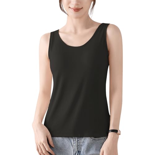 [Pneito] カップ付きタンクトップ タンクトップ レディース カップ付き ロング ブラトップ【柔らかい・通気性・パッド付き】 インナー レディース 夏 (JP, アルファベット, L, 標準, ブラック)