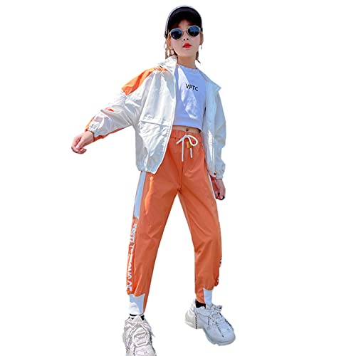 [ANGELCITY] ジャージ 子供服 女の子 上下セット 2点セット シンプル 運動着 体育 ガールズ おしゃれ キッズ スウェット 長袖 スポーツウェア パーカー ジュニア アウター 春秋 カジュアル HIPHOP ダンス 衣装 L480 (140, オレンジ)