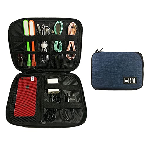 - ガジェットポーチPC収納ポーチ トラベルポーチ 自由な仕切り付きケーブル充電器ポーチ PC周辺小物整理 ACアダプタ・SDカード ・USBメモリ・小物収納 便利 ガジェットケース 通勤 出張 (中)