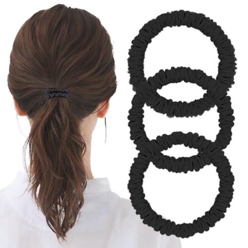 - 【髪も喜ぶ シルク 100% 】 ヘアゴム あとがつかない 髪ゴム 《専門家監修》4点セット ゴム シュシュ 跡がつかない 黒 おしゃれ 細い 髪留め 大人 (アソートD)999円