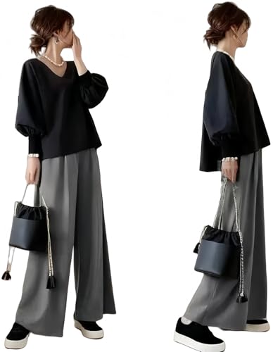 すべて見る- [YUANYUAN] 2点セット レディース セットアップ ニットセーター&ワイドパンツ パンツスーツ 秋服 冬服 ロング丈 vネック リブ おしゃれ 体型カバー 着痩せ カジュアル ゆったり 可愛い 通学 大人 日常着 部屋着 春 秋 冬 (写真色,XL)