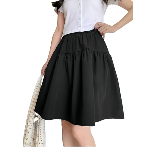 [KOEKOI] スカート レディース 夏 ひざ丈 フレア Aライン 通勤 Aライン オフィス OL 春 秋 夏 美尻 ハイウエスト 膝丈 ワンピース タイトスカート ワンピ 薄手 きれいめ 体型カバー ウエストゴム 無地 (JP, アルファベット, XL, 黒-スカート)