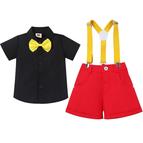 [XIUXIUAI] ミッキー コスプレ ミニー コスチューム ハロウィン 仮装 子供 可愛い 人気 ドット柄 スカート キッズ 半袖 パーティー イベント 男子 女の子 写真 撮影 演出服 誕生日 ハロウィンコスプレ 3点セット (ミッキー, 120cm)