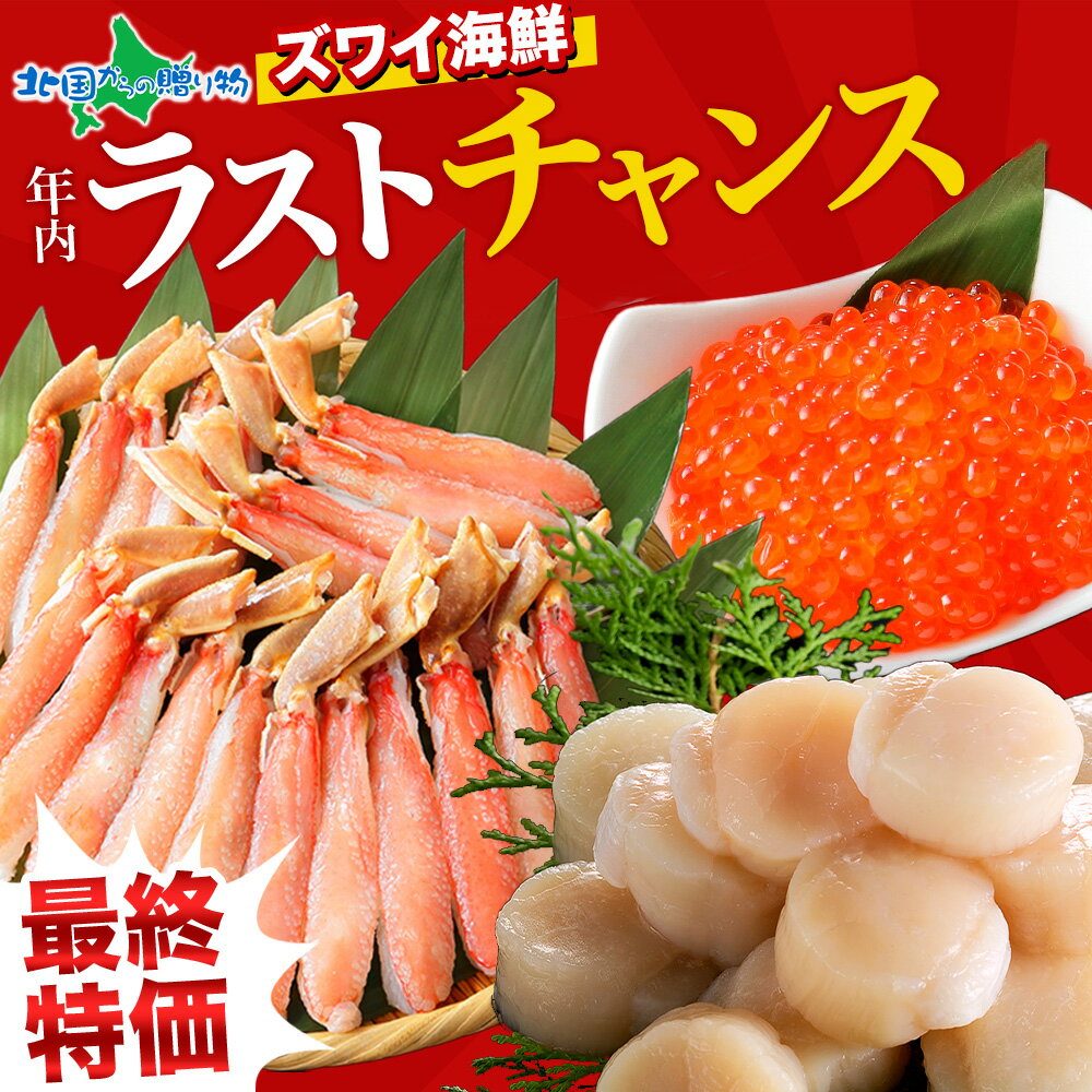 - 【年内発送〆切 12/27(金)13:00迄】ズワイガニ足800g いくら醤油漬け80gx2 ホタテ300g セット 蟹 御歳暮ギフト かに お歳暮ギフト ずわいがに 脚 茹で カニ ボイル いくら イクラ 醤油漬け 帆立 ほたて 新鮮 冷凍 海鮮 お正月 年末年始 食べ物 グルメ お取り寄せ 送料無料9,980円